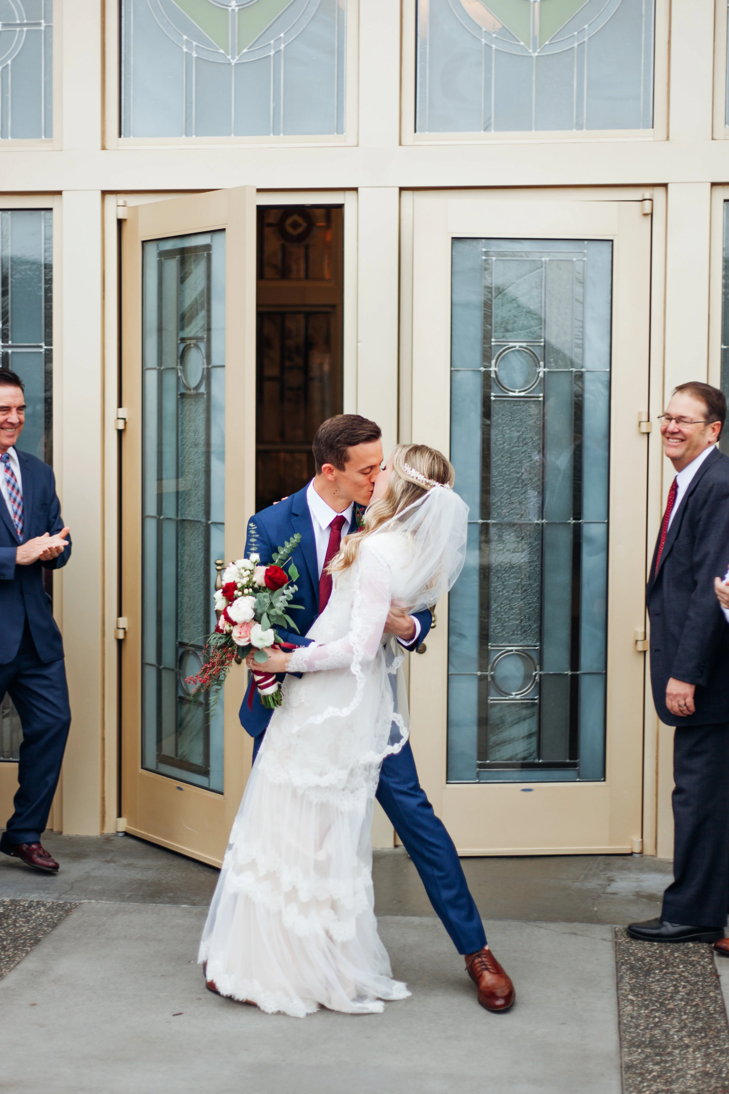 This Washington LDS temple is stunning, and I love how these two’s wedding colors stood out from the beautiful white marble background. The overcast weather added to the beauty of the photos by making everyone’s skin and outfits even-toned and bright.